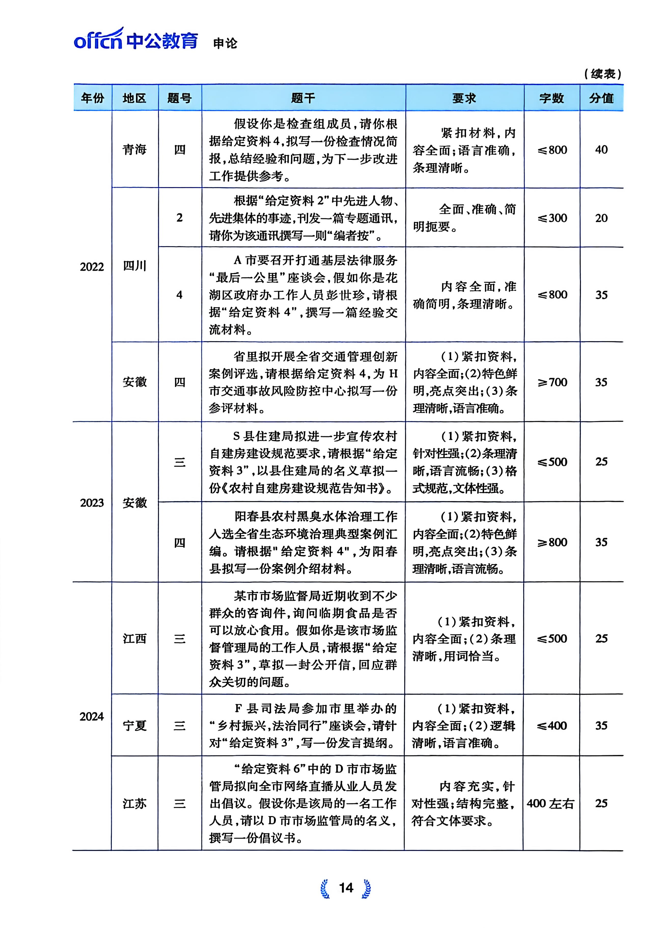 申论考情分析